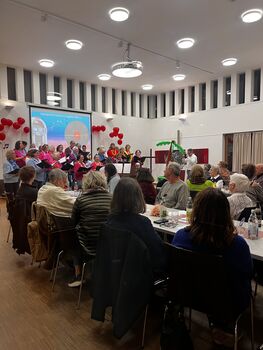 Per Glücksrad wurden die einzelnen Titel gezogen, so gab es stets eine kleine Überraschung welches Lied sich dahinter versteckte. Spätestens beim Refrain hat der Saal mit eingestimmt, geschunkelt und gejubelt.